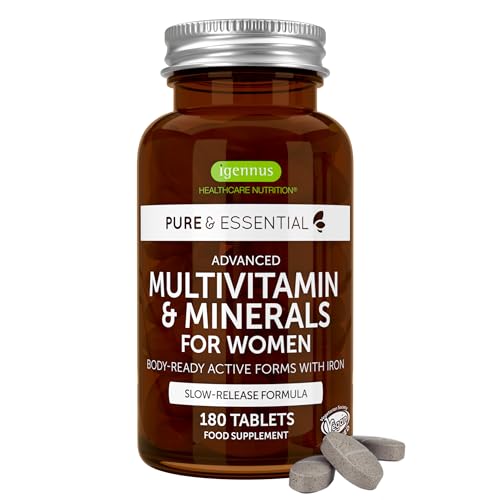 Igennus Methylated Women's Multivitamin with Gentle Iron, 21 Active Nutrients, Pure & Clean, All Day Nutrient Delivery, High Strength B-Vitamins, Easy-to-Swallow, 180 Vegan Tablets, 90 Servings