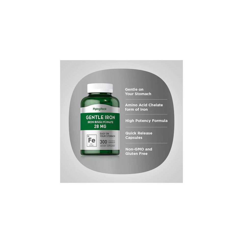PIPING ROCK Gentle Iron Bisglycinate, 300 Quick Release Capsules, 28 mg Free P&P