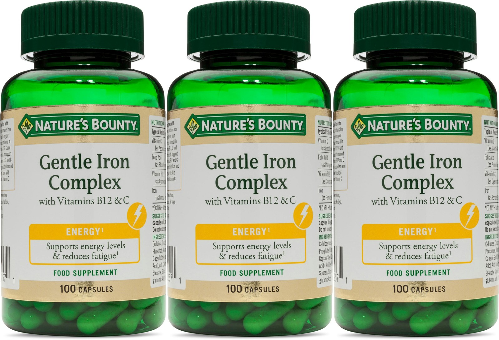 Nature's Bounty Gentle Iron Complex with Vitamins B12 & C 100 Capsules X 3