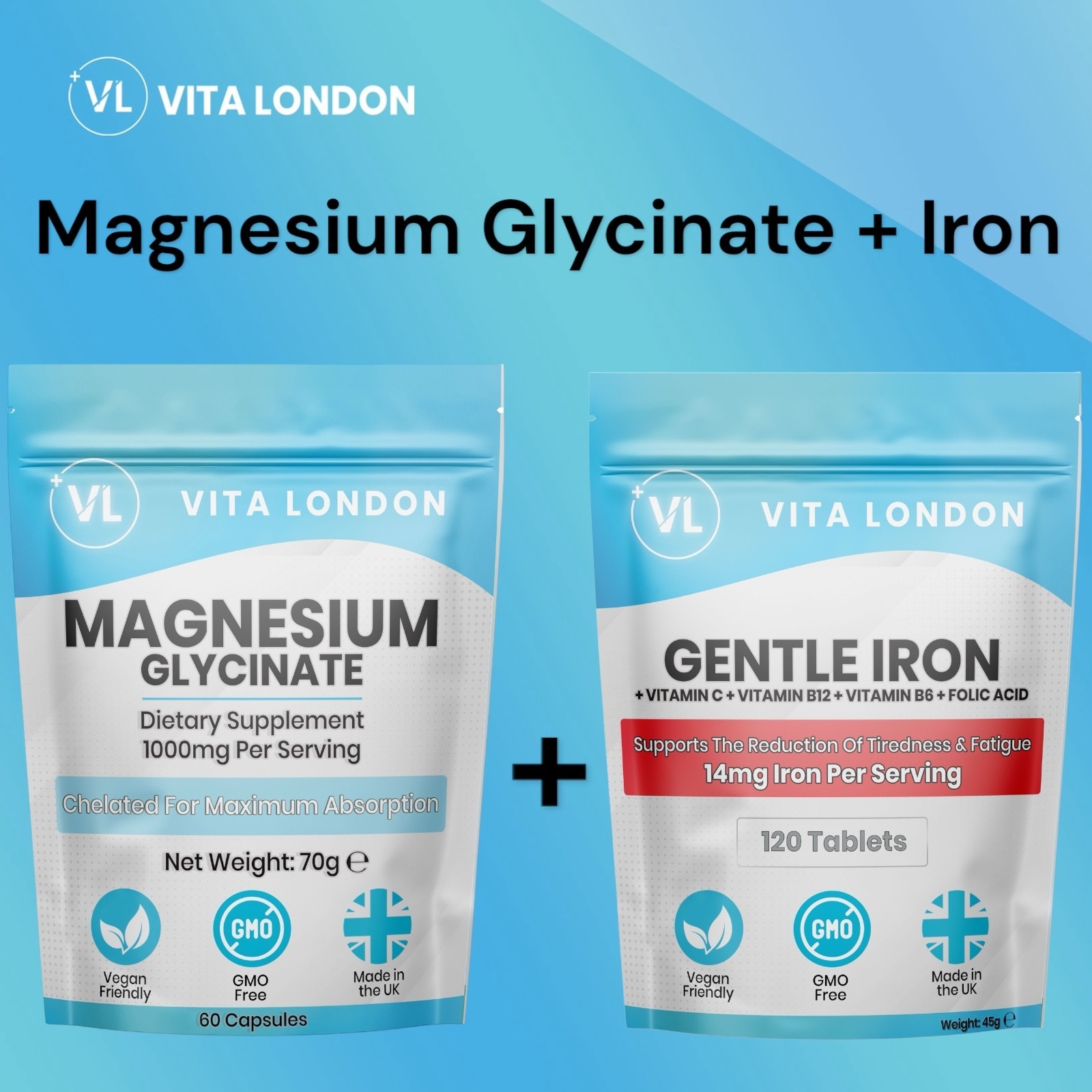 Magnesium Glycinate Capsules + Gentle Iron & Vitamin C B12 B6 Tablets - 2pk Set