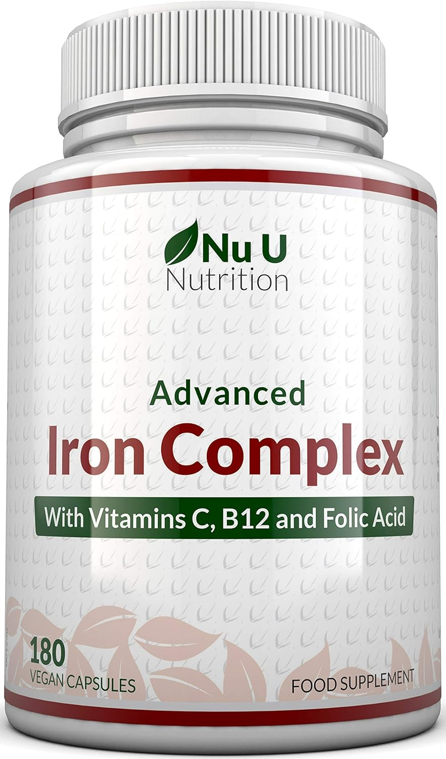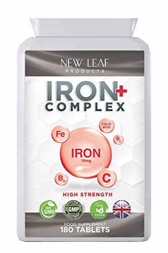 Gentle Iron Tablets Complex -Enriched with B12 & Vitamin C - Iron Supplements for Woman and Men - Ferrous Fumarate Energy Tablets Reduction in Tiredness and Fatigue (6 Months Supply) High Strength