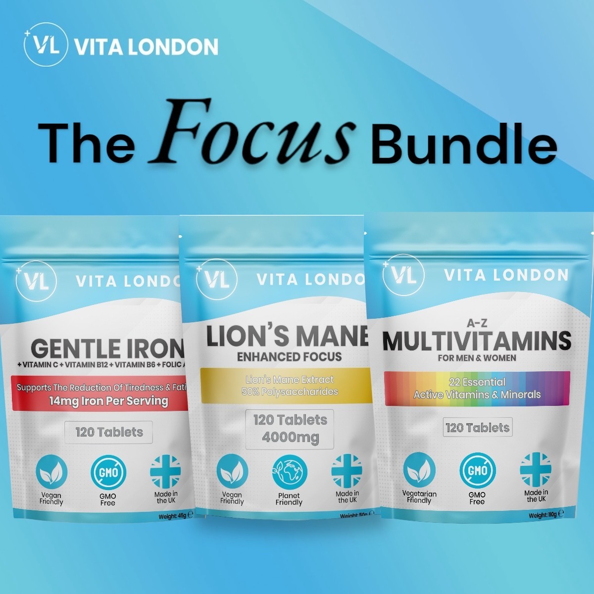 Focus Bundle - Gentle Iron B12 B6 + Lion's Mane + A-Z Multivitamins Tablets