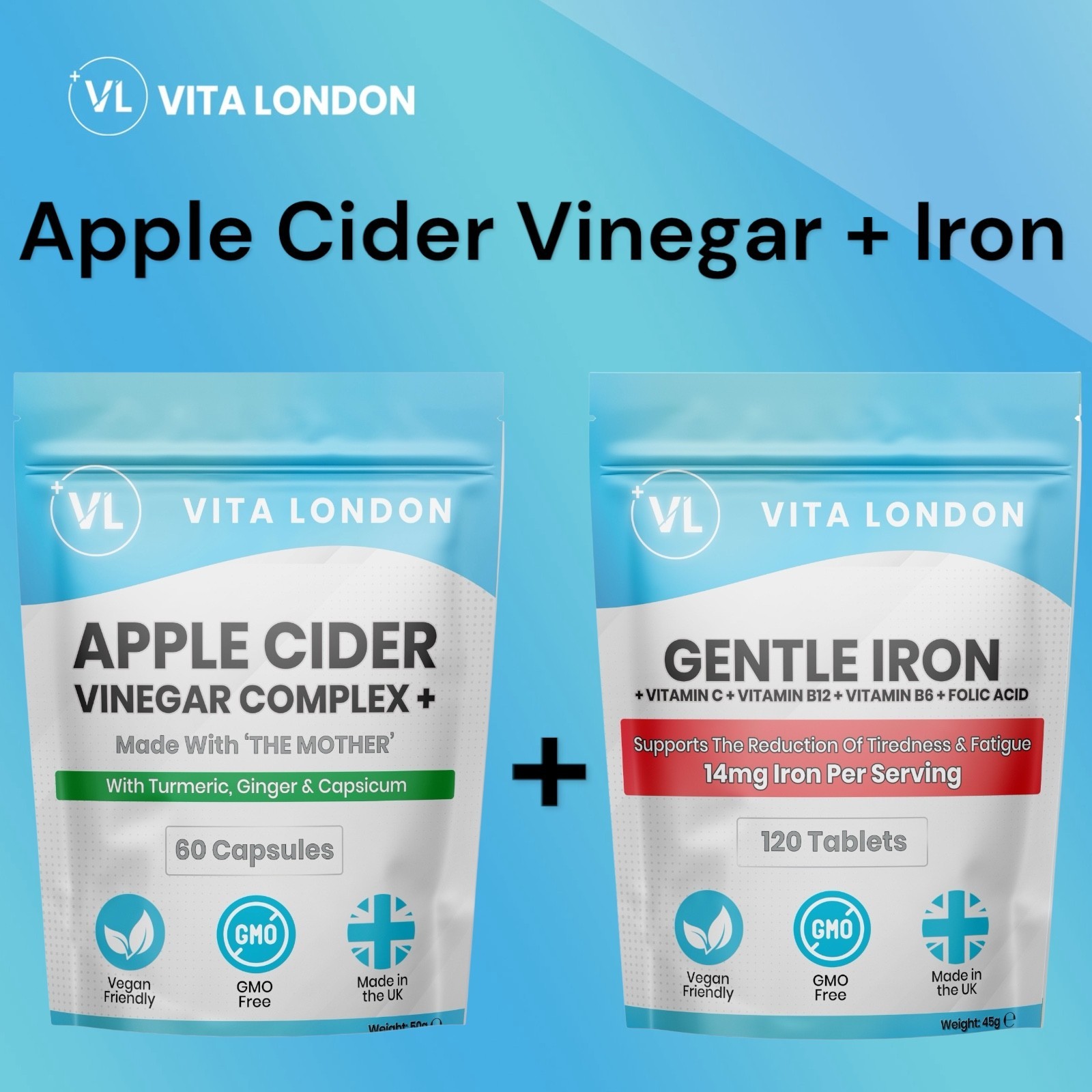 Apple Cider Vinegar Capsules + Gentle Iron & Vitamin C B12 B6 Tablets - 2pk Set