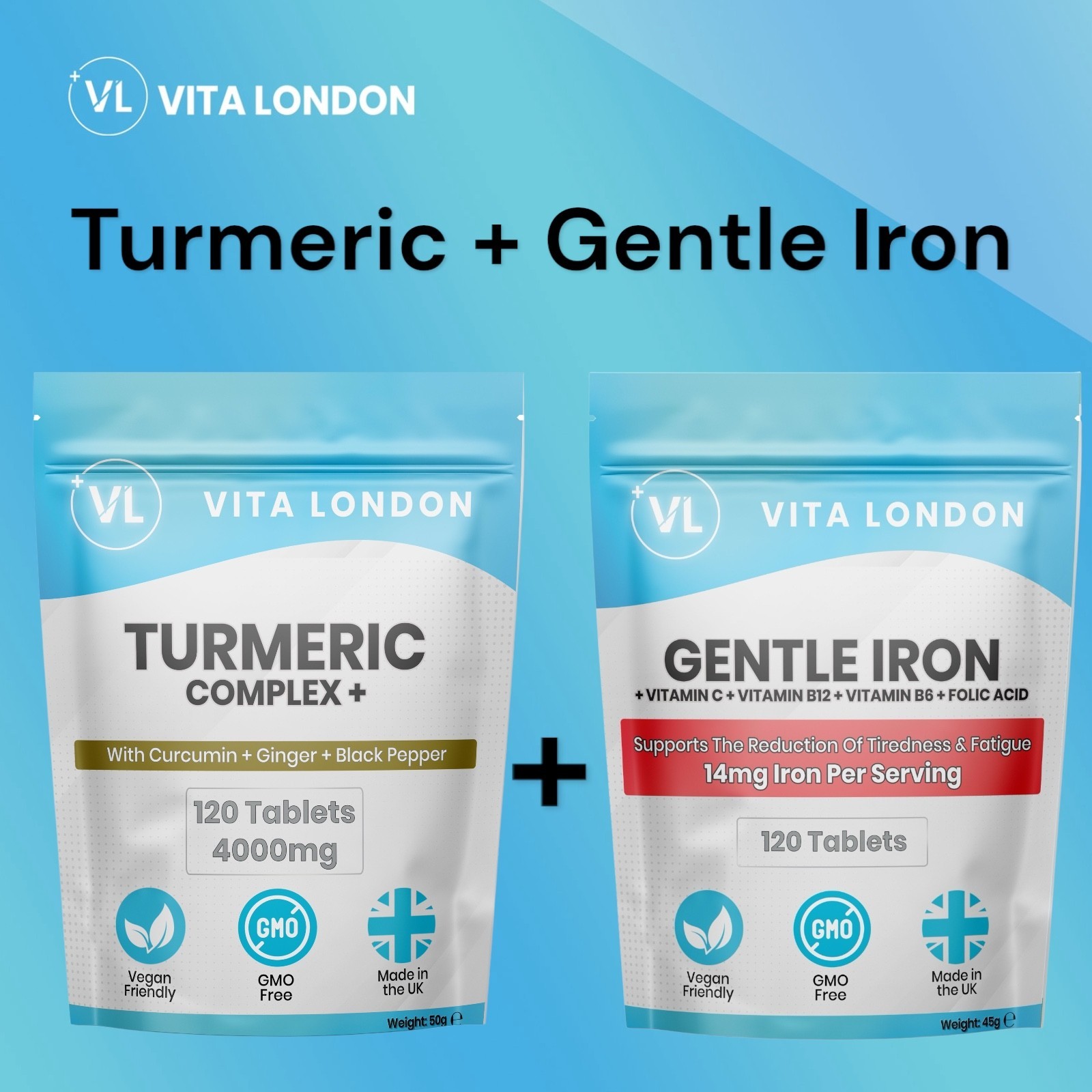Turmeric & Ginger + Gentle Iron & Vitamin C B12 B6 Tablets - 2pk Supplement Set