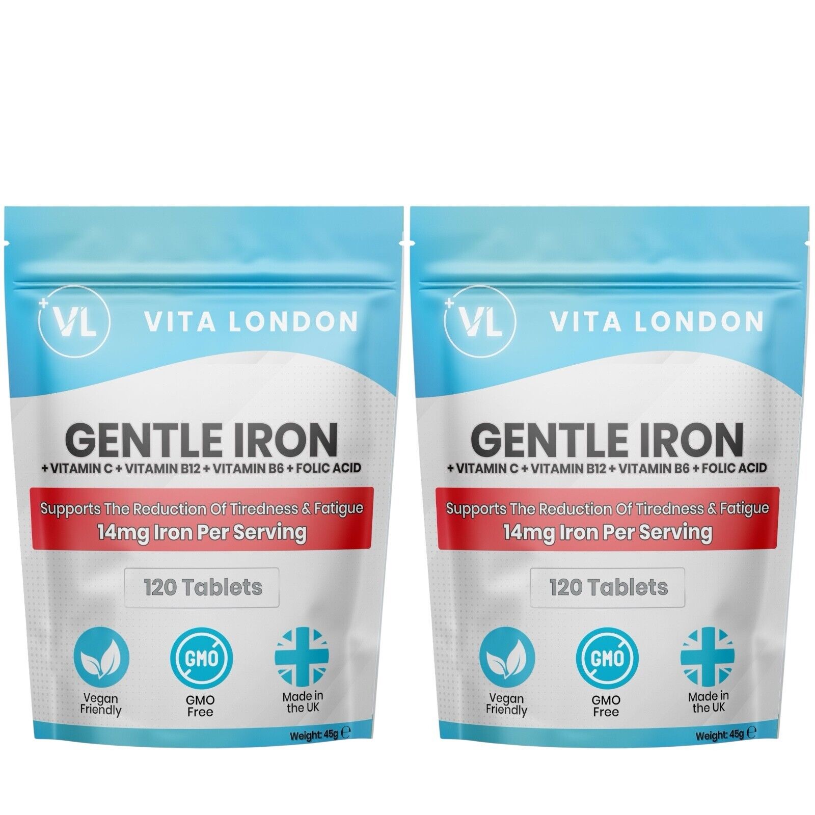 Gentle Iron & Vitamin C, B12, B6, Folic Acid - 240 Tablets (Not Capsules) Vegan