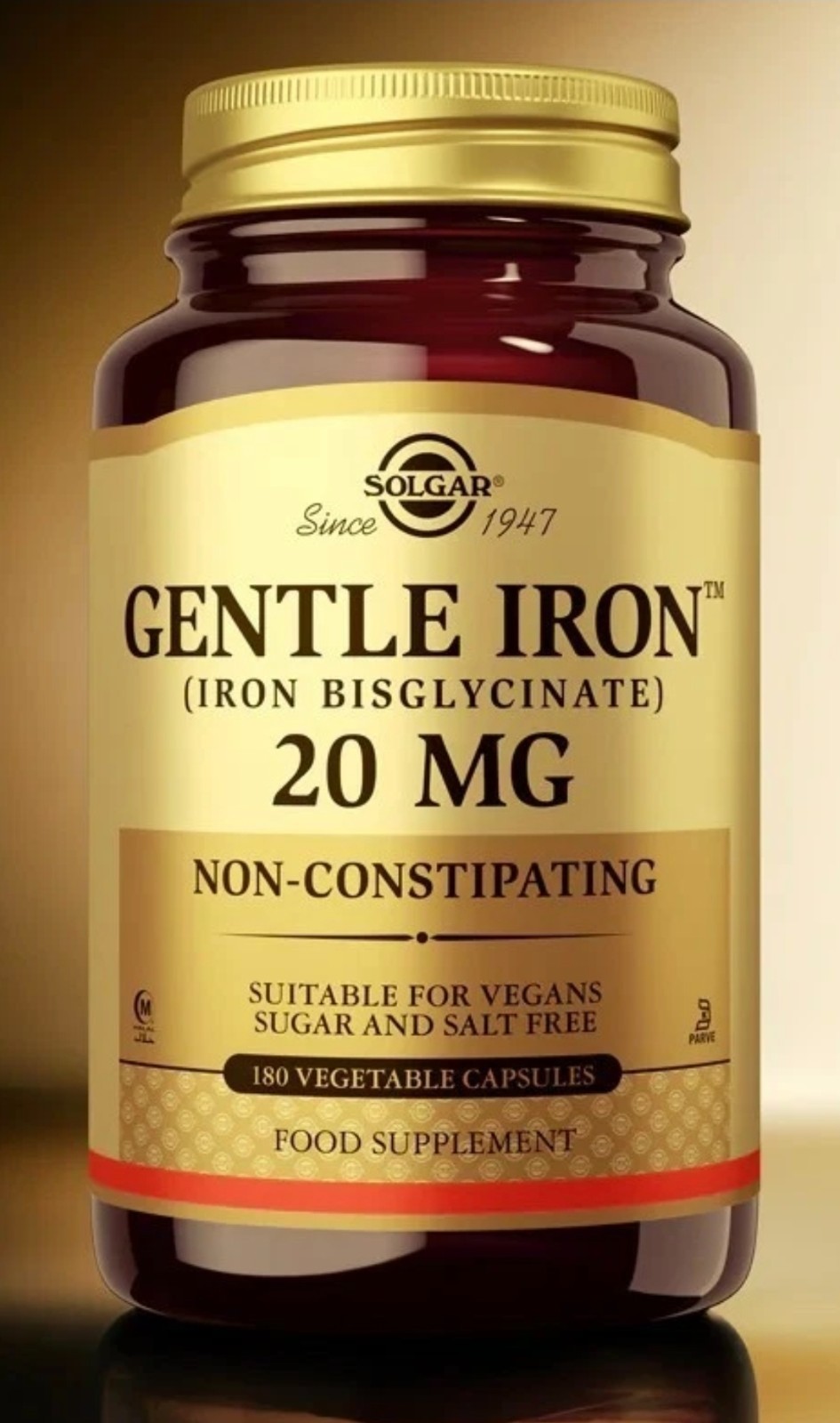Solgar Gentle Iron (Iron Bisglycinate) 20 mg 180 Vegetable Capsules