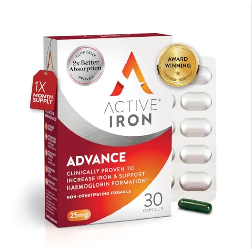 Active Iron Supplement 25 mg – Clinically Proven to Increase Iron & Energy Levels – Gentle, Non-Constipating, Highly Absorbed – 30 Capsules, 1 Month Supply