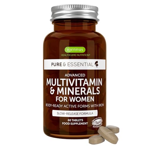 Igennus Methylated Women's Multivitamin with Gentle Iron, 21 Active Nutrients, Pure & Clean, High Strength B-Vitamins, Easy-to-Swallow, Sustained Release, 60 Vegan Tablets, 30 Servings
