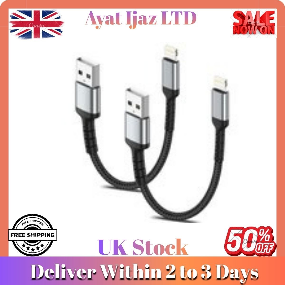 USB Charger Sync Cable Certified by Apple USB Red FREE DELIVERY