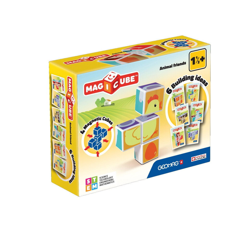 GEOMAG MagiCube Animal Friends 4-Piece Magnetic Stacking Cubes Building Set Toddlers & Kids Ages 1.5+ STEM Educational Toy Swiss-Made Creativ