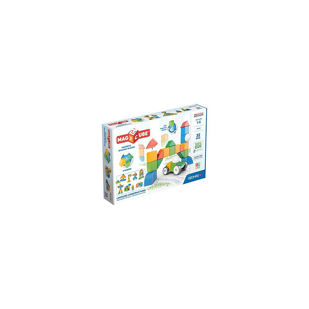 Geomag - Magicube 1+ Shapes - Magnetic Blocks for Kids - 4 Colours and Shapes - 32 Cubes ? 100 Percent Recycled Plastic