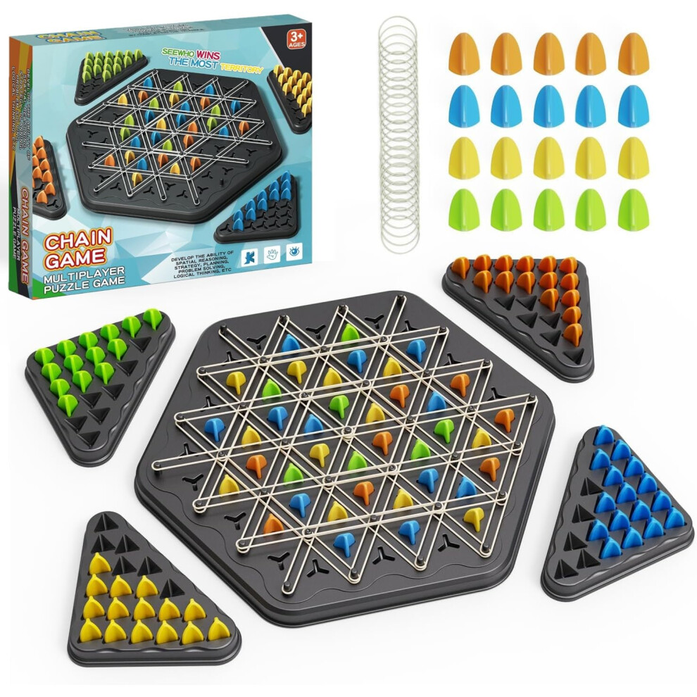 VingaHouse Chain Triangle Chess Game, Geometric Chess Game Set, Triggle Rubber Elastic Band Board Game, Family Board Game, Puzzle Strategy Game Toys