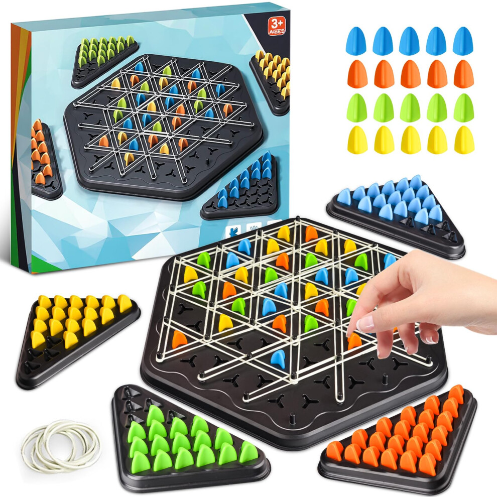 VingaHouse Chain Triangle Chess Game, Geometric Triangle Chess Set, Triangle Rubber Elastic Band Board Game, Family Board Game, Puzzle Strategy Game for 4 Players, Portable Toy Game for Kids Adult