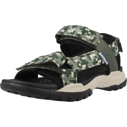 Geox J Borealis BOY E Sandal, Dk Green/Black, 1 UK