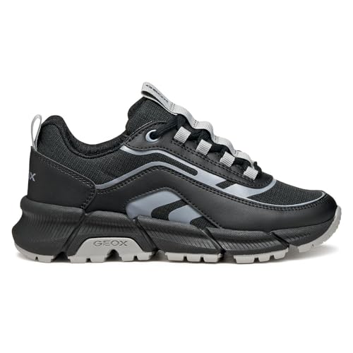 Geox J FLEXYPER Plus BOY Sneaker, Black/Grey, 3 UK