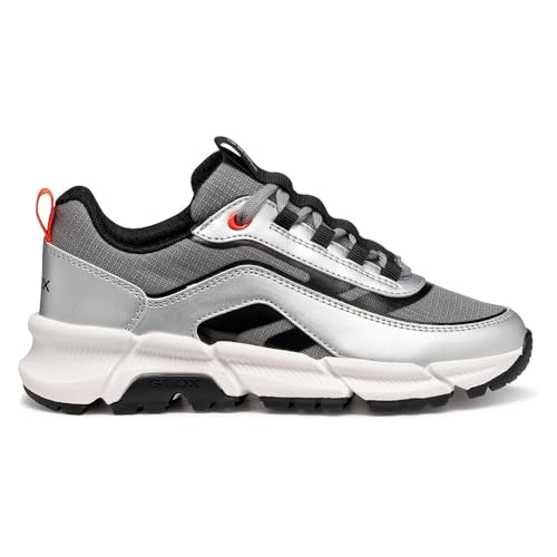 Geox Junior J Flexyper Plus Boy Sneakers, Silver/Lt Red, 34 EU