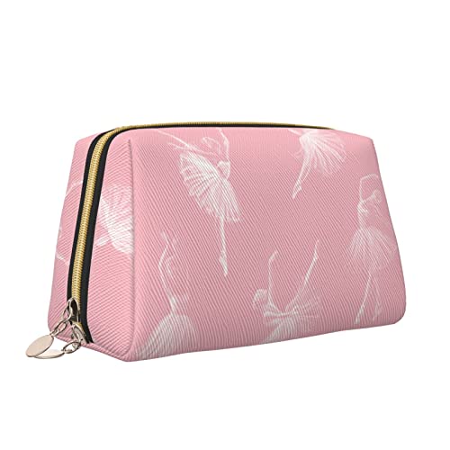 Leather Makeup Bag with Zipper for Women,Ballerina Dancing Art Girl Cosmetic Bag Toiletry Bag Cute Waterproof Makeup Case Travel Organizer for Accessories Toiletries Gifts,S