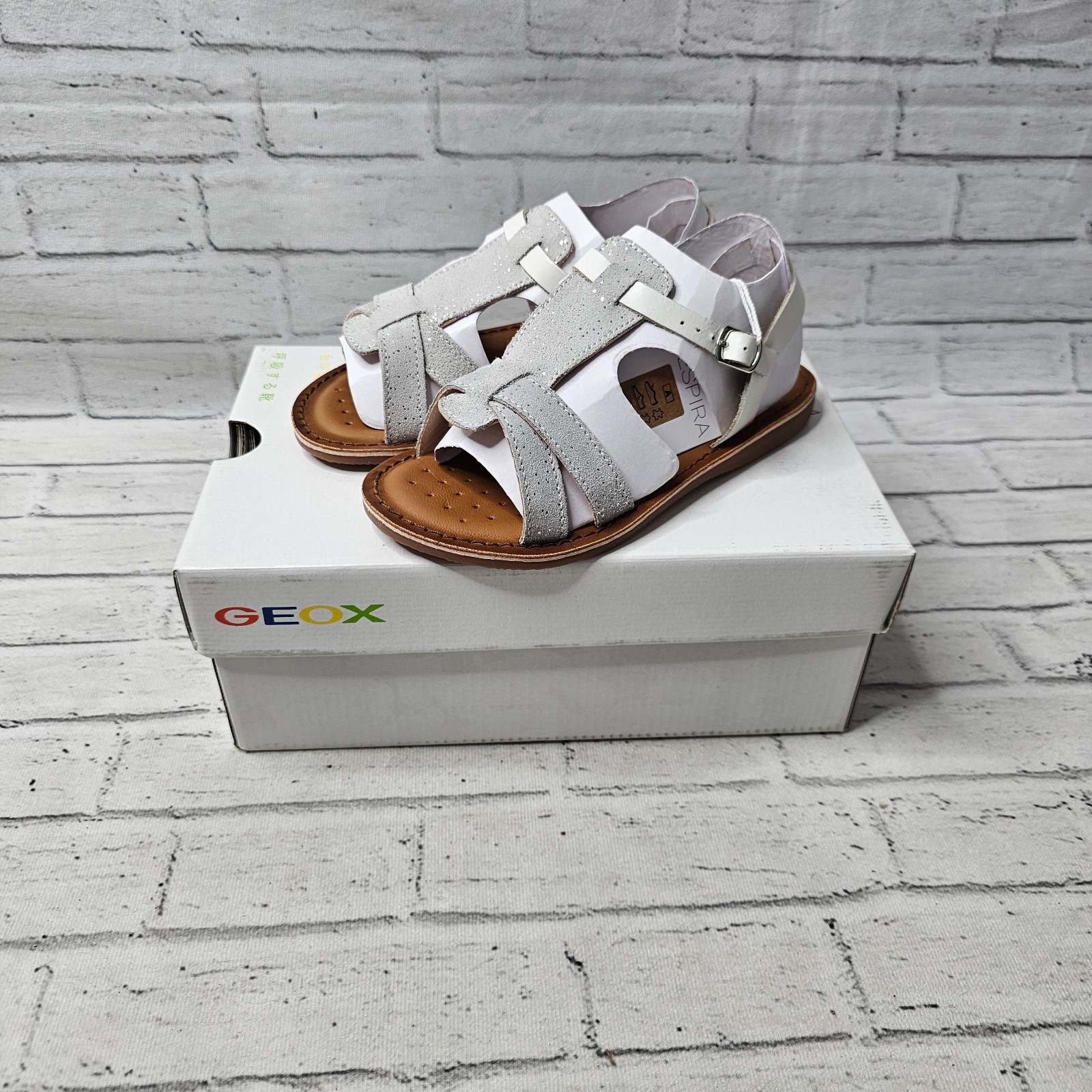 Geox Girl’s J Sandal Eolie White Silver UK 12.5 Leather Suede Summer Shoes