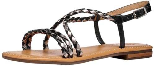 Geox Women's D Sozy S A Flat Sandal, Black/Leather, 40 EU