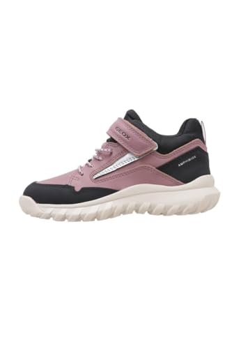 Geox J Simbyos Girl ABX A Sneaker, Dk Rose Black, 5 UK