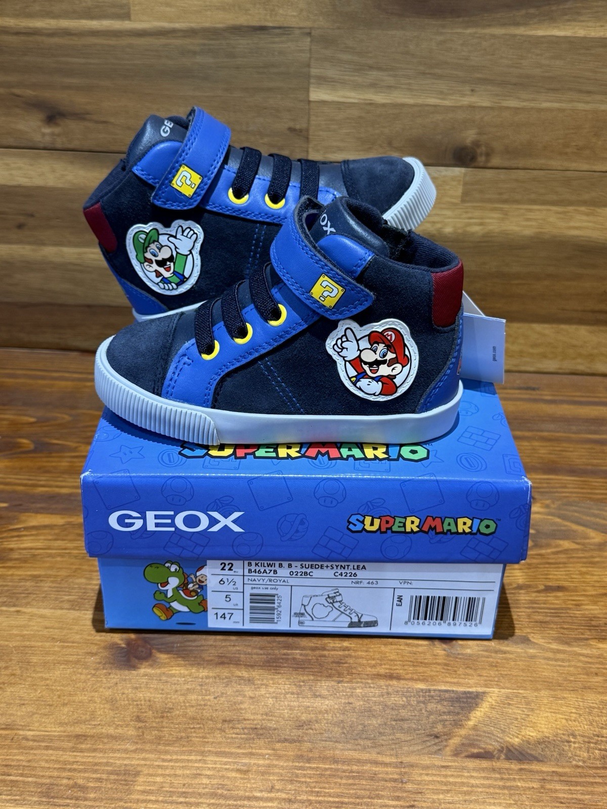Geox Kilwi Super Mario High Top Trainer - Navy / Royal Infant Size UK 5 EU 22