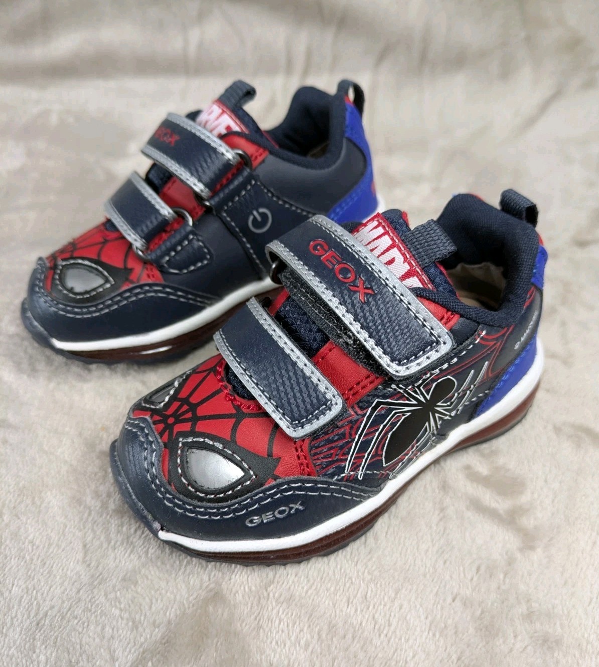 Geox Todo Marvel Spiderman Kids Light-Up Trainers UK 3.5 EU 20 Navy Red NWT