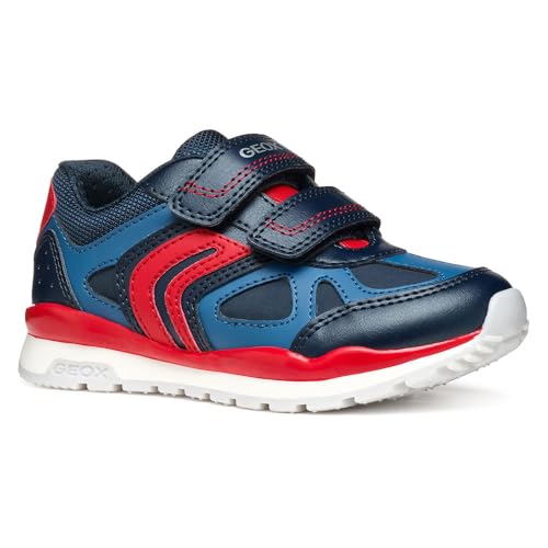Geox J Pavel D Boys’ Sneaker, Navy/Red, 2.5 UK