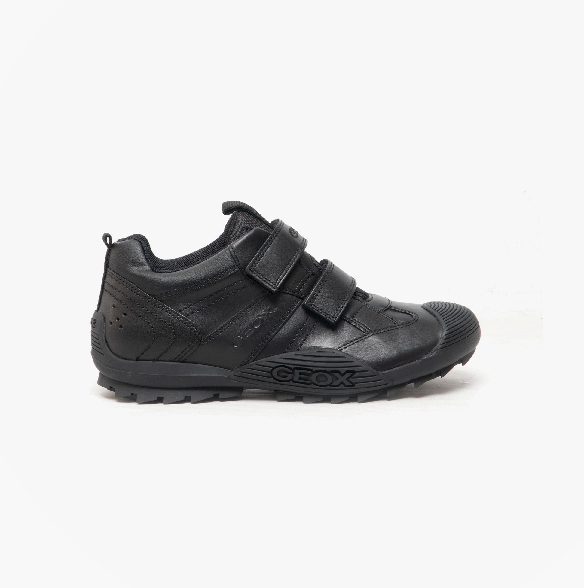 Geox N.SAVAGE B B Boys Leather Touch Fasten School Shoes Black - Size UK 9 Kids