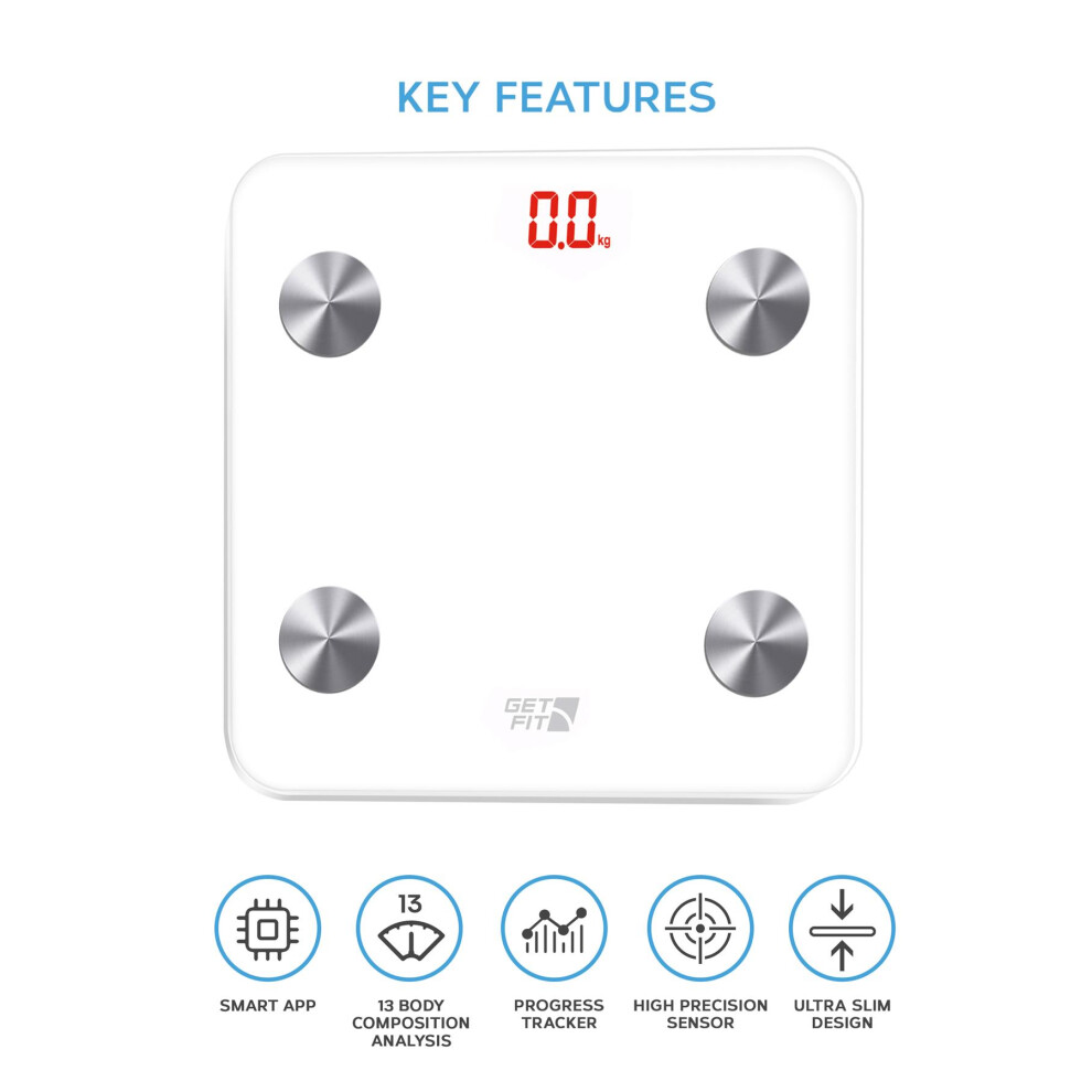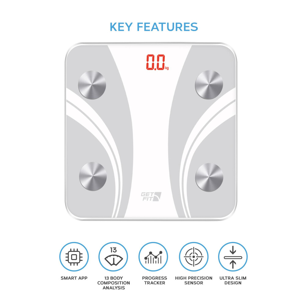 (Arctic White) Get Fit Smart Bathroom Scales - Digital Body Weighing Scale - Connect To IOS / Android, Lcd Display & Automatic On/Off