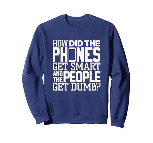 Funny how did cell phone get smart and people get dumb Sweatshirt, Adult Unisex, Navy Blue, X-Large