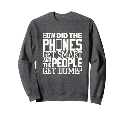 Funny how did cell phone get smart and people get dumb Sweatshirt, Adult Unisex, Dark Heather Grey, Medium