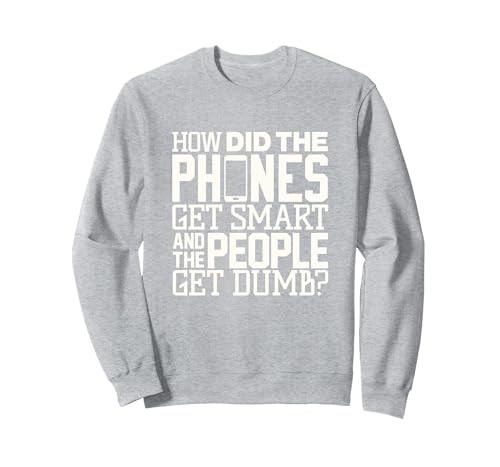 Funny how did cell phone get smart and people get dumb Sweatshirt, Adult Unisex, Heather Grey, X-Large