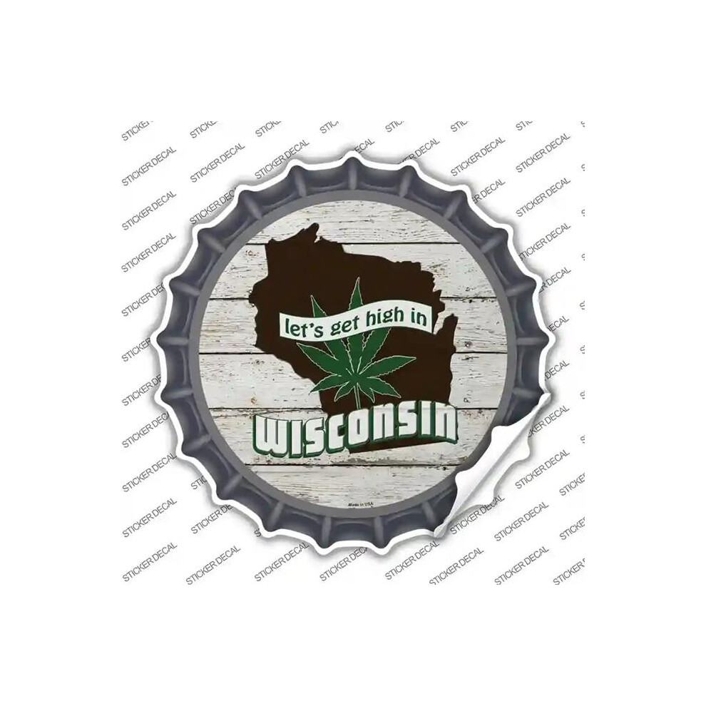 Smart Blonde BC-1338s-S Lets Get High in Wisconsin Novelty Bottle Cap Sticker Decal - Small