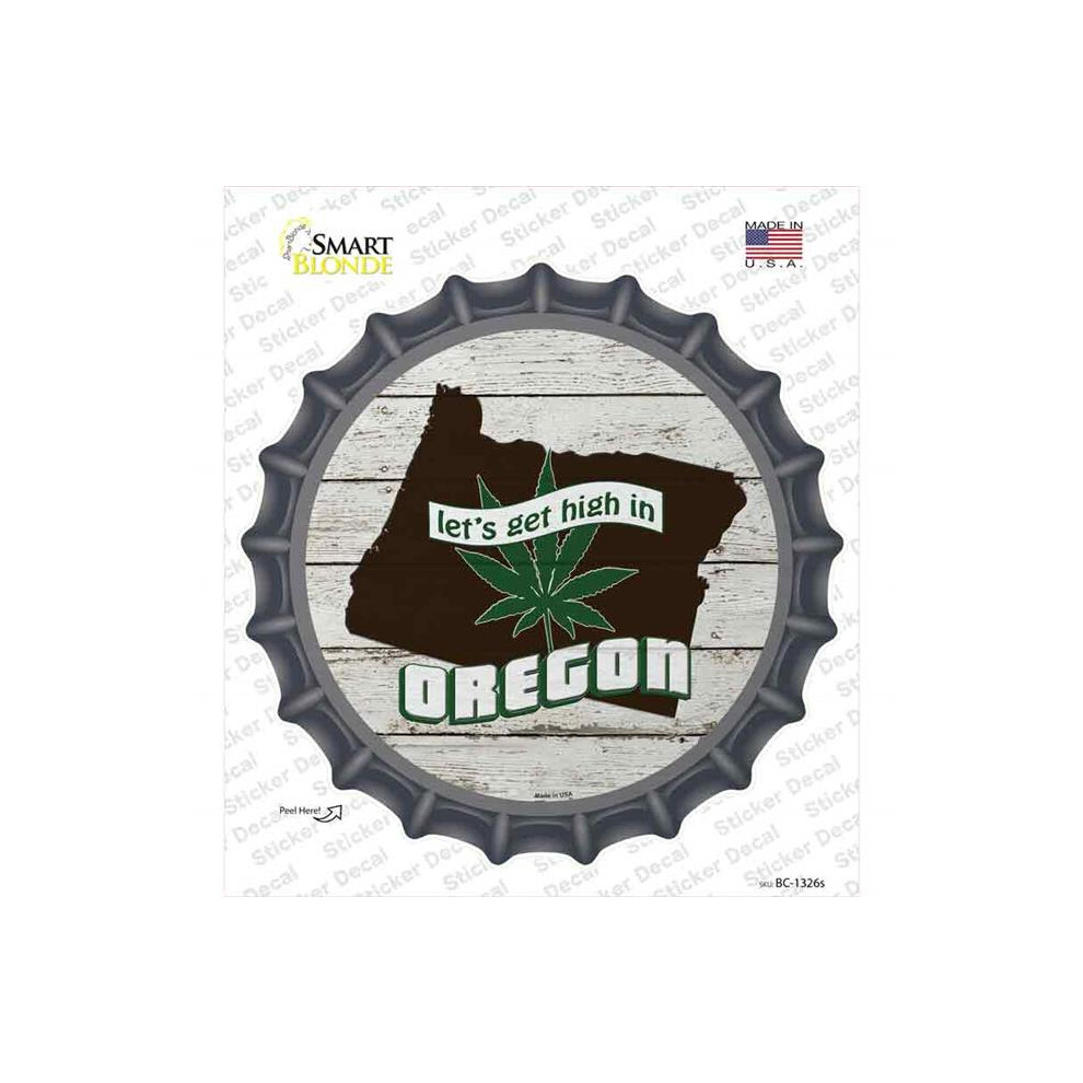 Smart Blonde BC-1326s-M Lets Get High in Oregon Novelty Bottle Cap Sticker Decal - Medium