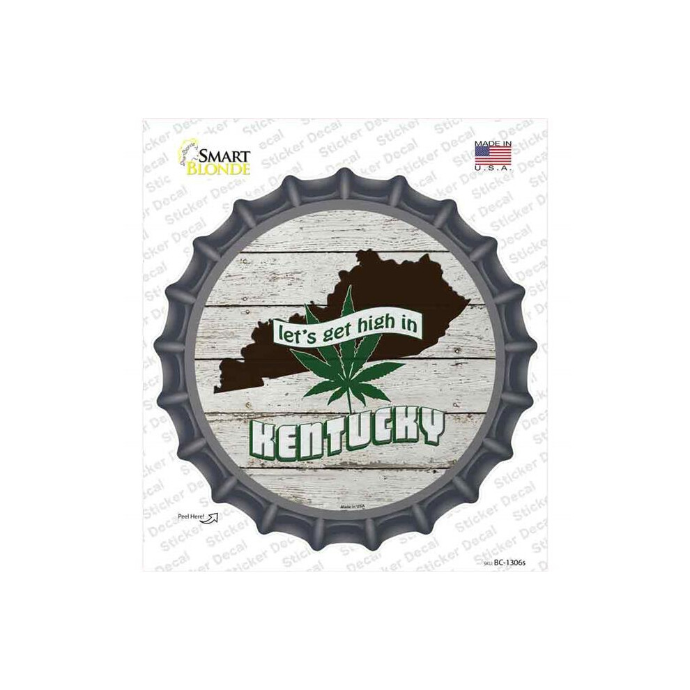 Smart Blonde BC-1306s-M Lets Get High in Kentucky Novelty Bottle Cap Sticker Decal - Medium