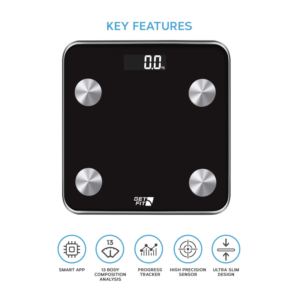 (Solid Black) Get Fit Smart Bathroom Scales - Digital Body Weighing Scale - Connect To IOS / Android, Lcd Display & Automatic On/Off