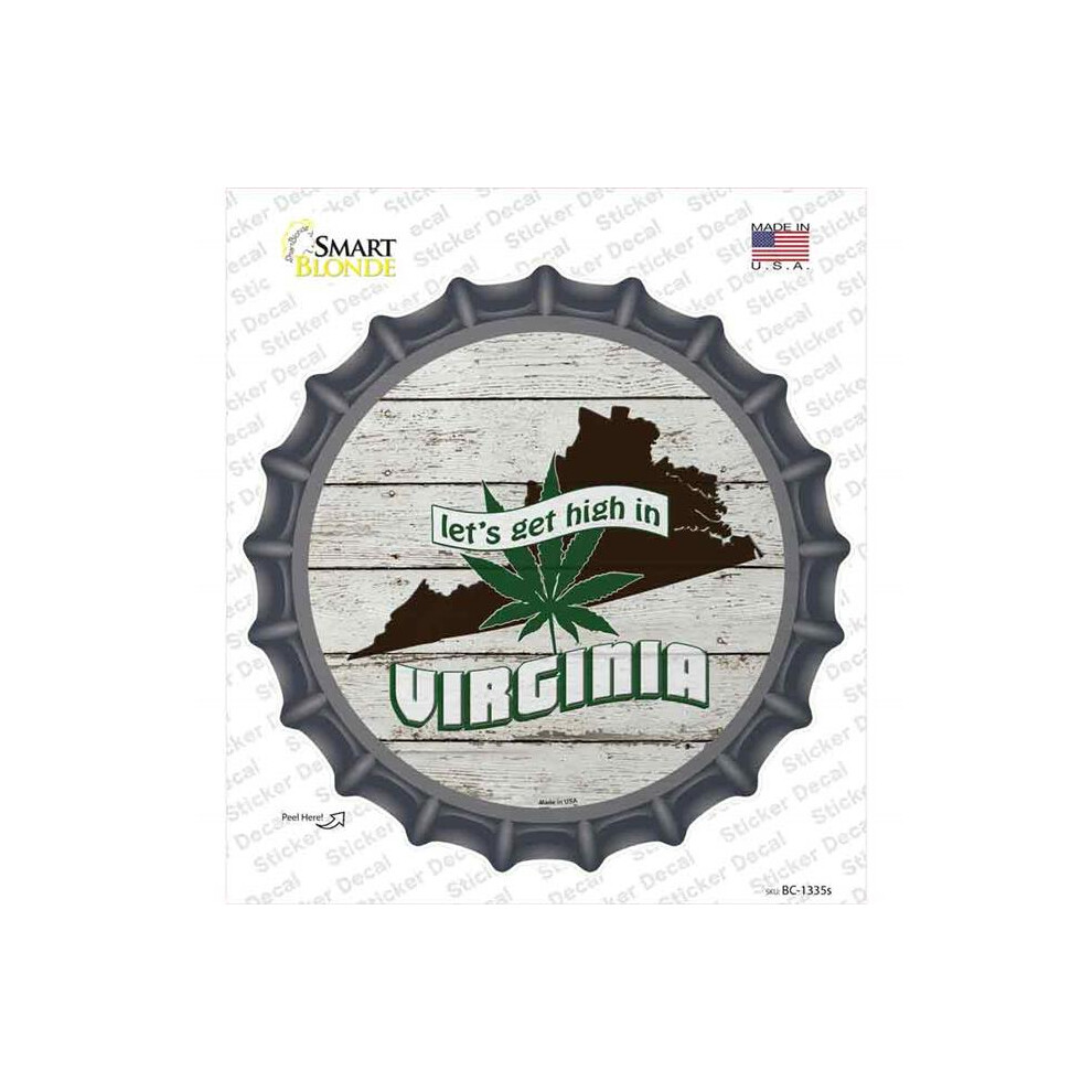 Smart Blonde BC-1335s-M Lets Get High in Virginia Novelty Bottle Cap Sticker Decal - Medium