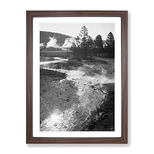 Ansel Adams Central Geyser Basin, Yellowstone Vintage Photograph Framed Wall Art Print, Ready to Hang Picture for Living Room Bedroom Home Office Décor, Walnut A3 (34 x 46 cm)