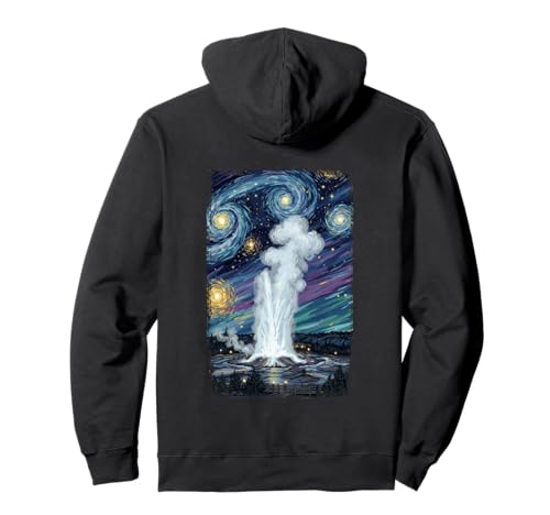 Old Faithful Geyser Van Gogh Starry Night Travel Pullover Hoodie