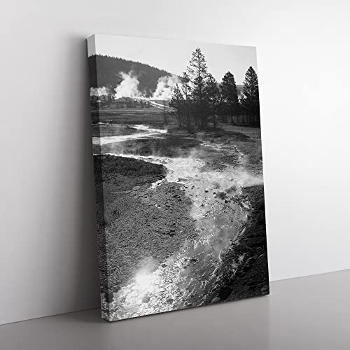 Ansel Adams Central Geyser Basin, Yellowstone Vintage Photograph Canvas Wall Art Print Ready to Hang, Framed Picture for Living Room Bedroom Home Office Décor, 76x50 cm (30x20 Inch)