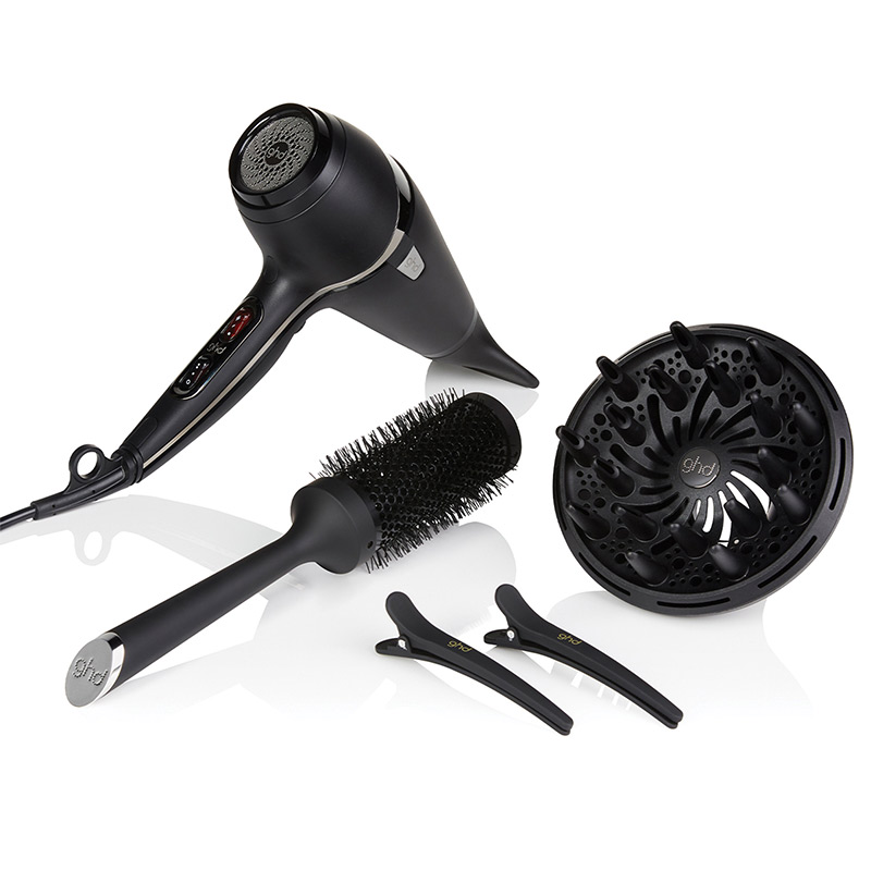 ghd Air Hair Drying kit- Professional Hairdryer, with ghd Diffuser, Wide Nozzle, Sectioning Clips and Size 3 Vented Radial Brush (Black)