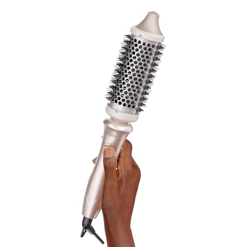 TYMO Thermal Brush - Curling Brush Hair Styler, Heated Round Curling Iron, Blowout Styler with Flexi-Fit Tech for Hair Straightening and Curling 2 in 1, Dual Voltage, 3 Temps, Quick & Easy, 43mm Gold