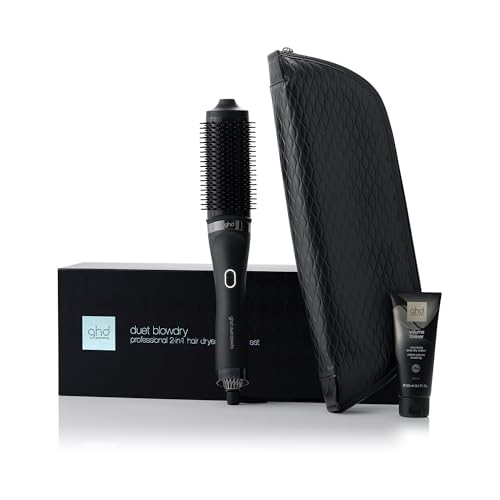 ghd Duet Blowdry Gift Set - 2-in-1 Hair Dryer Brush with Volume Forever Blow Dry Cream and Heat Resistant Bag, Wet to Blow Dried with No Heat Damage, 3X More Volume, 50% More Shine, UK Plug