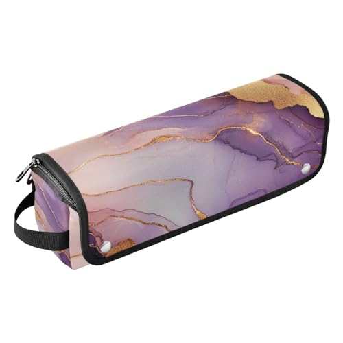 famyily Hair Tool Travel Bag and Heat Resistant Mat with Zipper Carrying Case Flat Curling Iron Waterproof Organizer for Curling Iron Straightener Flat Hair Dryer, Purple and Gold Marble Texture