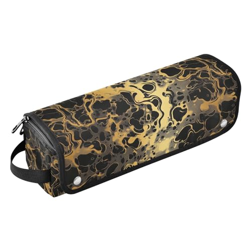 FRODOTGV Gold Abstract Metallic Women Hot Hair Tools Travel Bag Portable Carrying Case Organizer and Heat Resistant Mat with Zipper for Straightener Flat Hair Dryer