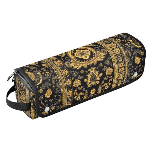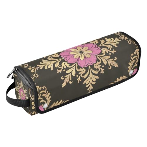 2-in-1 Curling Iron Travel Case with Removable Heat Resistant Mat Waterproof Curling Iron Travel Case for Curling Iron Straightener Flat Hair Dryer, Vintage Flower Pattern Black and Gold