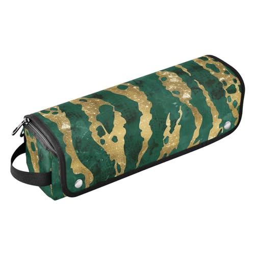 2-in-1 Curling Iron Travel Case with Heat Resistant Pad Double-Layer Travel Carrying Case for Curling Iron Straightener Flat Hair Dryer-Gold Cheetah Stripes Forestgreen