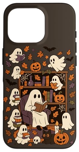Spooky Ghost Reading Books Chair Halloween Library Bookworm Case for iPhone 16 Pro