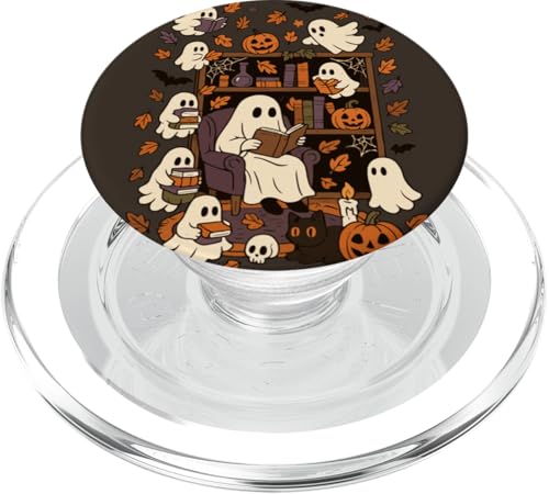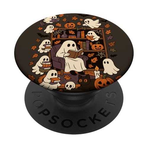 Spooky Ghost Reading Books Chair Halloween Library Bookworm PopSockets Adhesive PopGrip