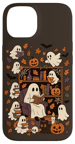 Spooky Ghost Reading Books Chair Halloween Library Bookworm Case for iPhone 15